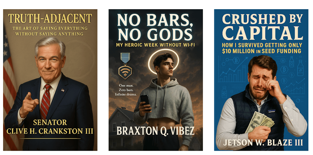 They’re short, punchy, clever titles by independent creators tapping into what people already love to laugh at: politics, productivity, influencers, corporate life, astrology, startup culture, and more.